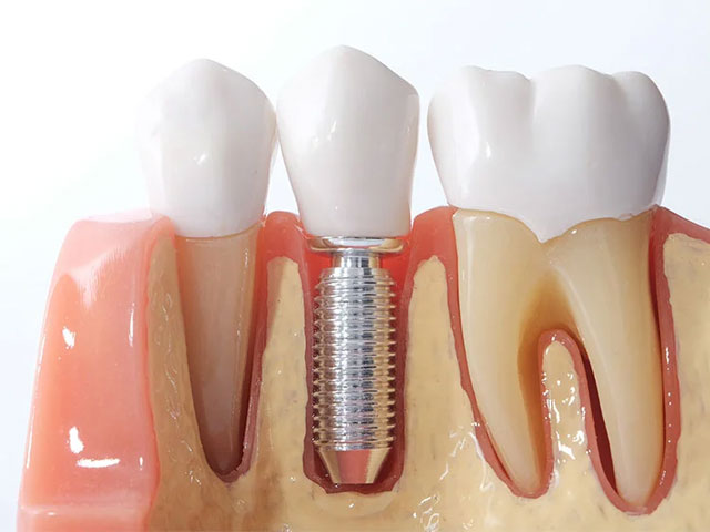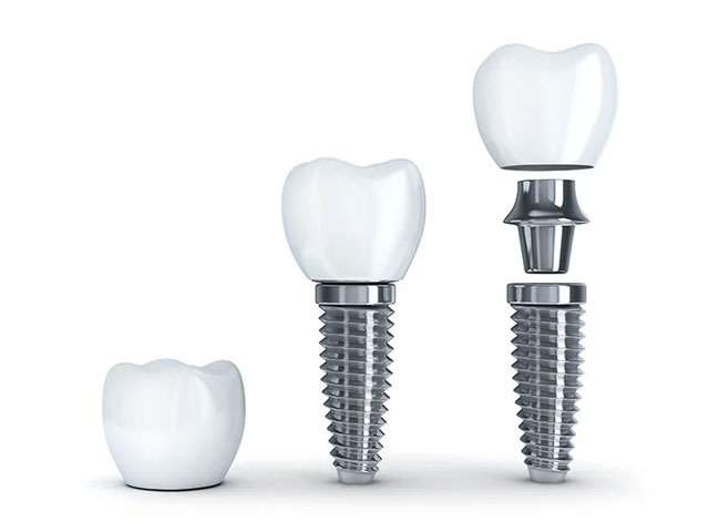 インプラントは、人工の歯、支台部(アバットメント)、インプラント体の3つの部分から出来ています。
